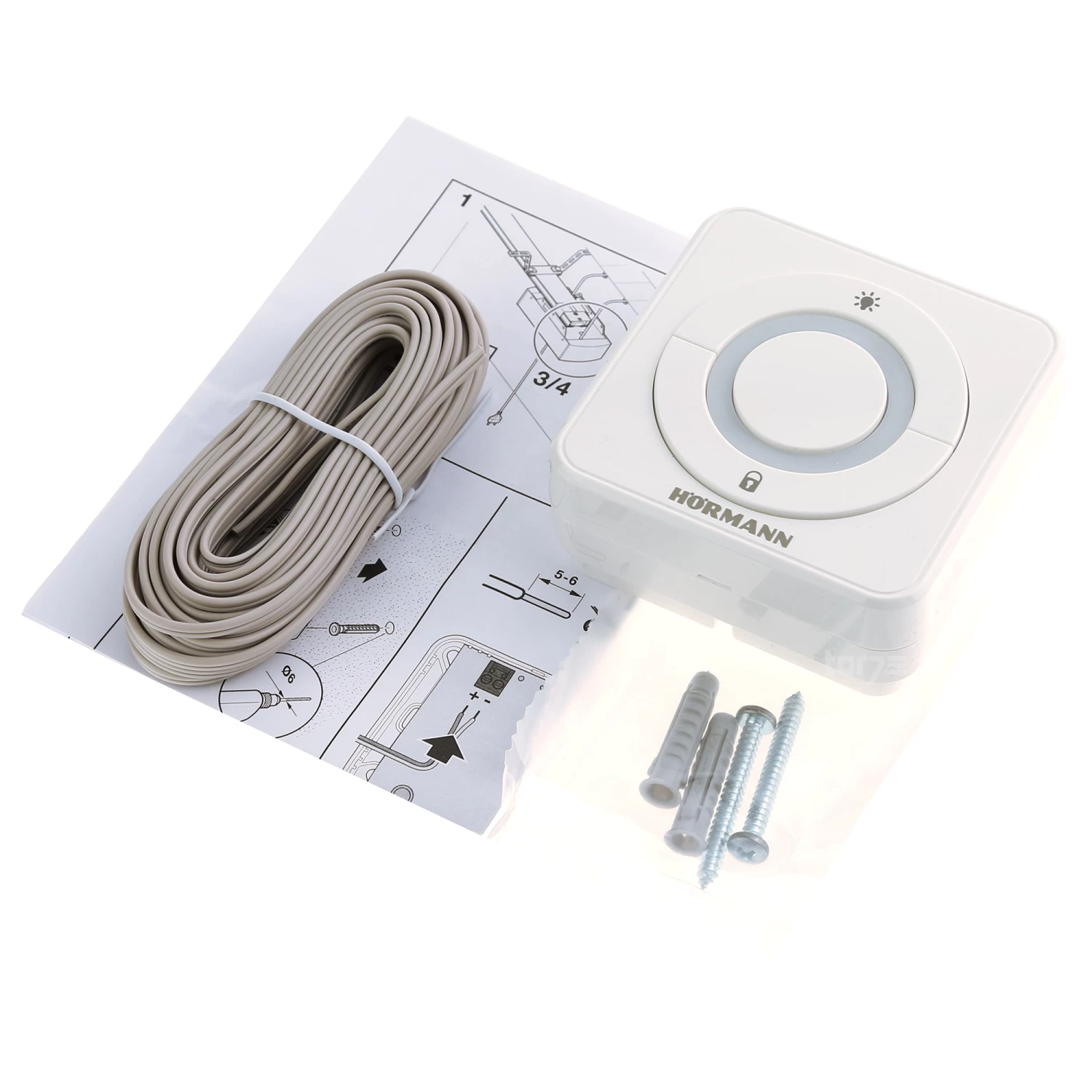 Der Impulsgeber ist mit sämtlichen Hörmann Antrieben mit Tastereingang kompatibel. Die Montage sollte jedoch grundsätzlich im trockenen Innenbereich der Garage erfolgen. Im Lieferumfang ist die passende Anschlussleitung zur Verbindung mit dem Antriebskopf bereits enthalten.