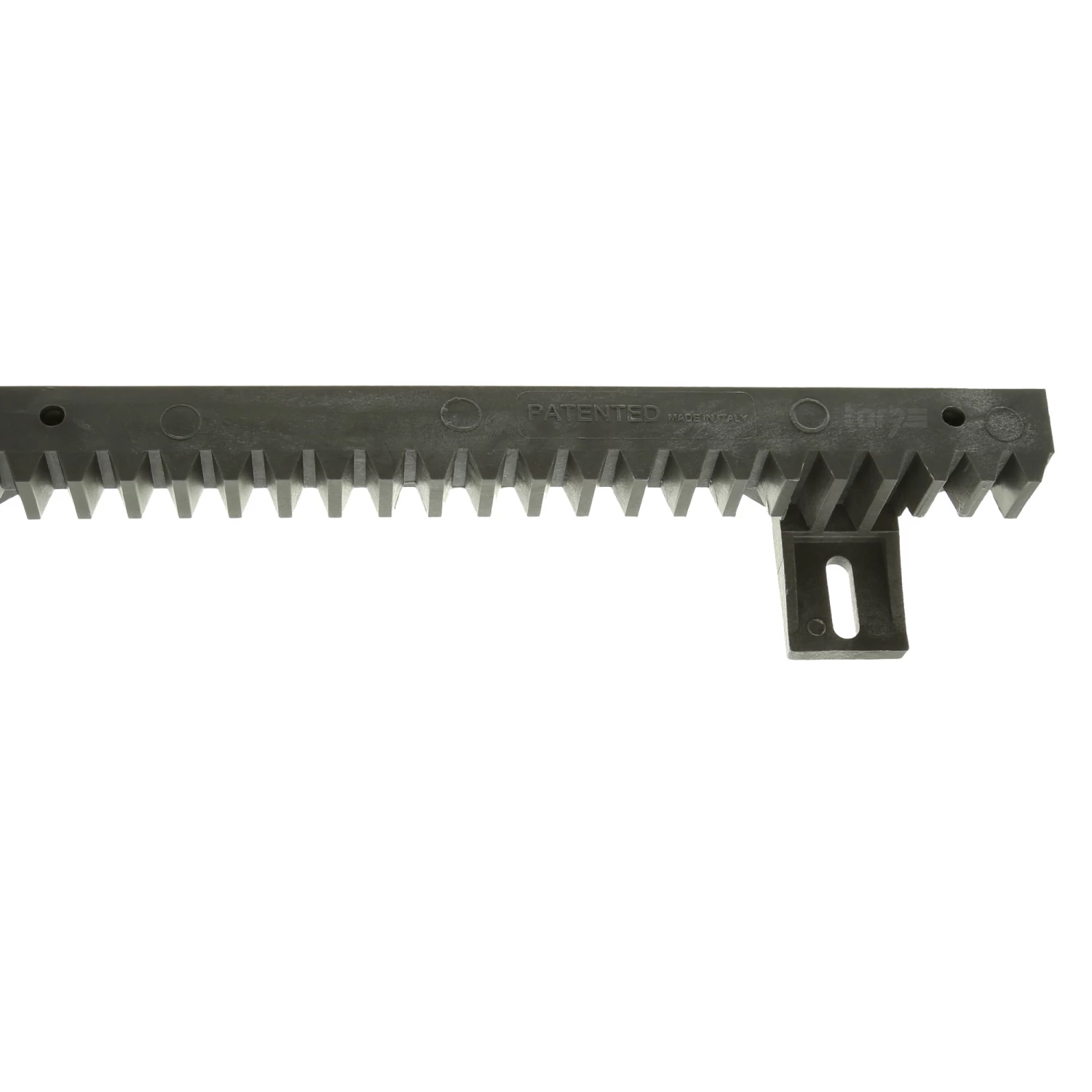 Die Kunststoff-Zahnstange V6 von der Firma Hörmann ist passend zum Hörmann Schiebetor-System LineaMatic und somit kompatibel mit dem Antriebsritzel Modul 4. Die Stange besitzt eine Länge von 1 Meter und insgesamt 6 Befestigungslaschen an der unteren Seite.