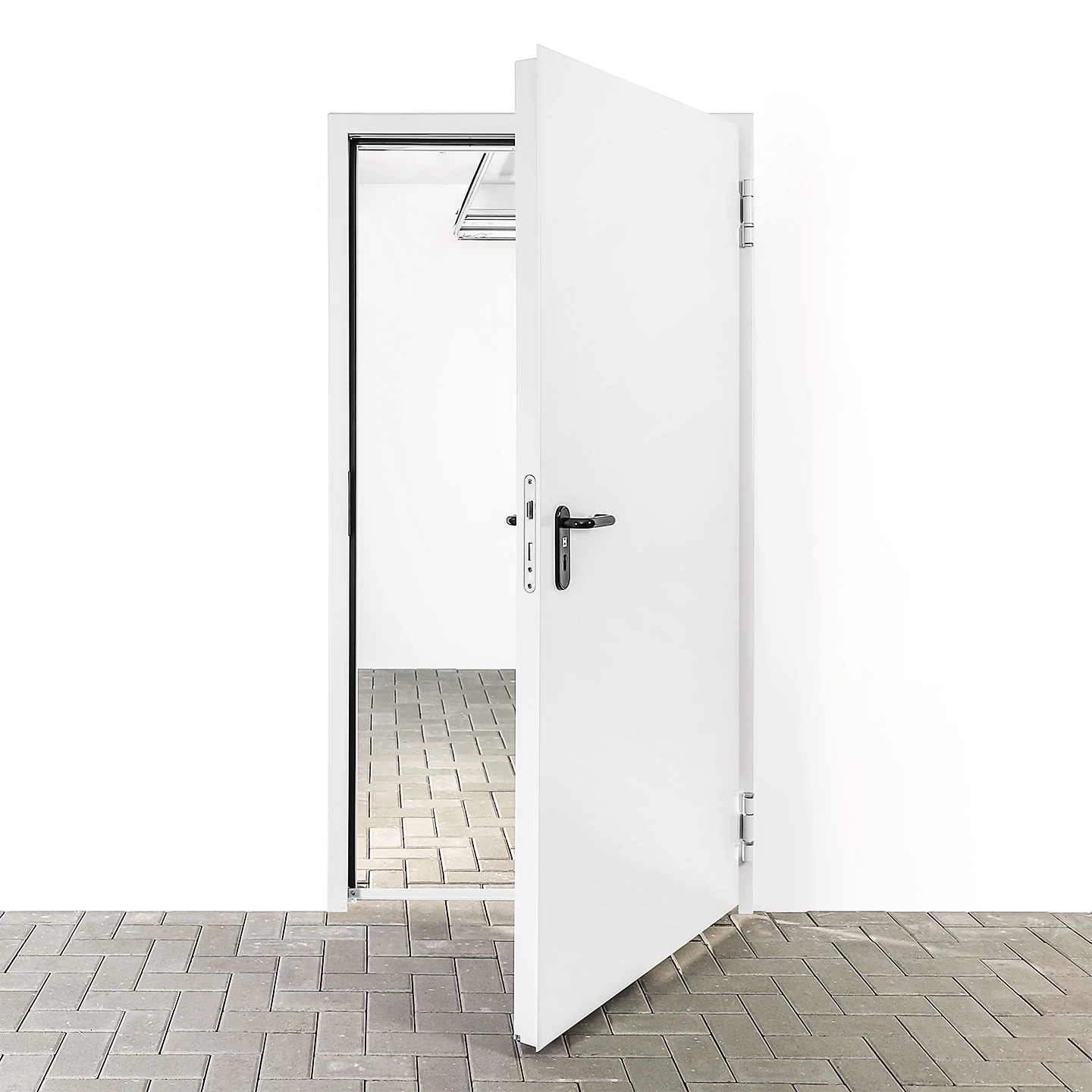 HINWEIS: Bei der hier angebotenen Stahltür handelt es sich um Lagerware. Änderungen sind daher nicht möglich. Wünschen Sie eine abweichende Türausstattung, wie beispielsweise andere Zargenausführung, rauchdichte Ausführung, Einbruchhemmung RC2/RC3, Türabschlüsse, Panikschlösser, Elektroausstattung, Verglasungen, etc., unterbreiten wir Ihnen gerne ein individuelles Angebot.