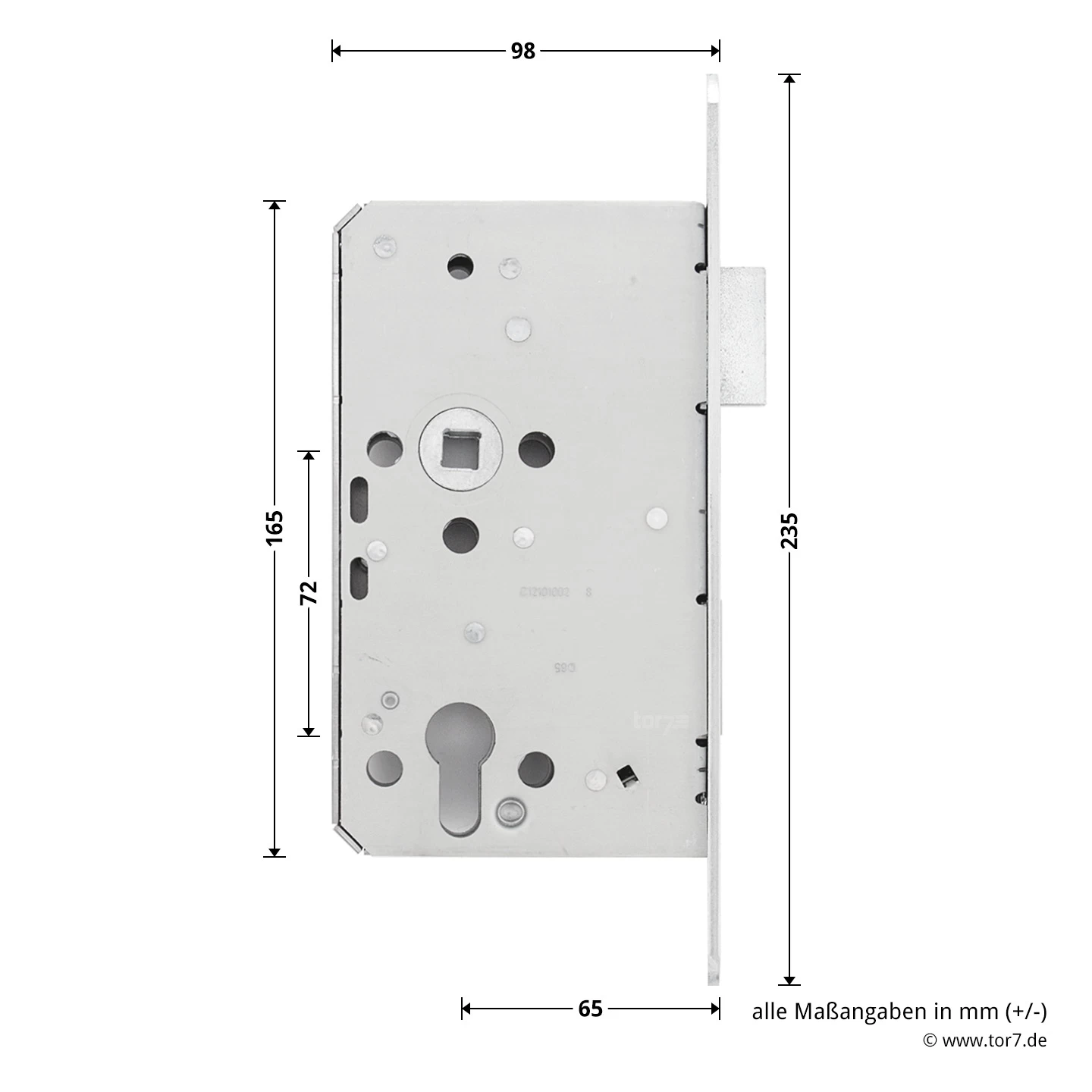 Das Hörmann Panikschloss BKS 1201 mit durchgehender Nuss und PZ-Lochung eignet sich für Hörmann Stahltüren, die nachträglich mit einem Panikschloss ausgestattet werden sollen bzw. als Ersatzteil für bereits als Paniktür fungierende Türen. Das Einsteckschloss mit der Fluchttürfunktion E entspricht hierbei der DIN EN 179 und entspricht somit den Normen, sowie gesetzlichen Regelungen zur Gebrauchstauglichkeit von Fluchttüren. Verwendet werden muss dabei zwingend eine geprüfte und zertifizierte Wechselgarnitur, um die zulassungskonforme Nutzung zu gewährleisten. Einsetzbar ist dieses Panikschloss bei Hörmann Stahltüren oder Fremdfabrikaten mit Türanschlag DIN links und Dornmaß 65 mm.