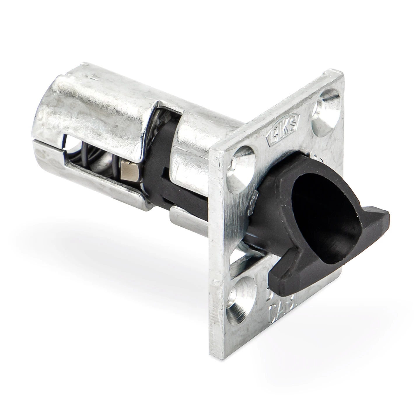 Das Hörmann Schaltschloss 1895 BKS mit eckigem Stulp wird bei 2-flügeligen Hörmann Multifunktionstüren aus Stahlblech eingesetzt und ist für ein zuverlässiges Schließverhalten des Standflügels zuständig. Hierbei besteht zudem eine gültige Zulassung für Feuerschutztüren nach DIN 4102 und für Fluchttüren nach EN 179 und EN 1125. Das Schaltschloss wird bei den genannten Türausführungen oben im Standflügel (Bedarfsflügel) eingebaut und sorgt nach dem Schließvorgang für einen selbsttätigen Ausschluss der Treibriegelstange. Während des Öffnungsvorgangs ist diese fest arretiert und löst sich erst, wenn das Schaltschloss beim Schließvorgang gedrückt wird. Daher sollte der Abstand zwischen Türblatt und Zarge im oberen Bereich zwischen 2 bis 7 mm liegen. Verwendbar ist diese Schlossausführung für Türen mit rechtem oder linkem Anschlag. Für eine hohe Lebensdauer des Schaltschlosses wird der Stulp aus hochwertigem, verzinktem Stahl gefertigt, wohingegen die Falle für ein leises Schließverhalten in Kunststoff ausgeführt wird.