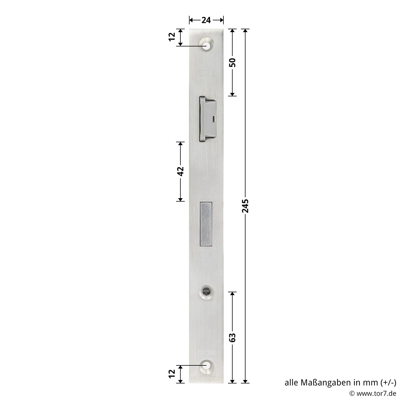 Das Hörmann Schlupftür-Schloss wird bei Hörmann Schwingtoren der Ausführung DF80, DF95 und DF98 eingesetzt, die mit einer Schlupftür mit Türanschlag DIN links ausgestattet sind. Für einen ordnungsgemäßen Verschluss und eine optimale Sicherung vor unbefugtem Zutritt ist die Schlupftür mit einem Einsteckschloss mit 2-tourig ausfahrbarem Riegel gesichert. Über die Drückernuss erfolgt zudem die Bedienung der Türfalle über den Türdrücker und somit eine komfortable Nutzung der Tür. Defekte oder Beschädigungen der vorhandenen Schlossausführungen können zu Funktionsstörungen oder einem nicht ordnungsgemäßen Türverschluss führen, weshalb ein rechtzeitiger Austausch empfehlenswert ist. Durch die PZ-Lochung ist die weitere Nutzung des vorhandenen oder die eines handelsüblichen Profilzylinders möglich. Der problemlose Austausch und eine langjährige Funktionsweise werden durch passgenaue Schlossabmessungen und hochwertige Materialien garantiert. Für rechts angeschlagene Schlupftüren erhalten Sie das Hörmann Schlupftür-Schloss DF80/95/98, PZ, DIN rechts ebenfalls in unserem Shop.