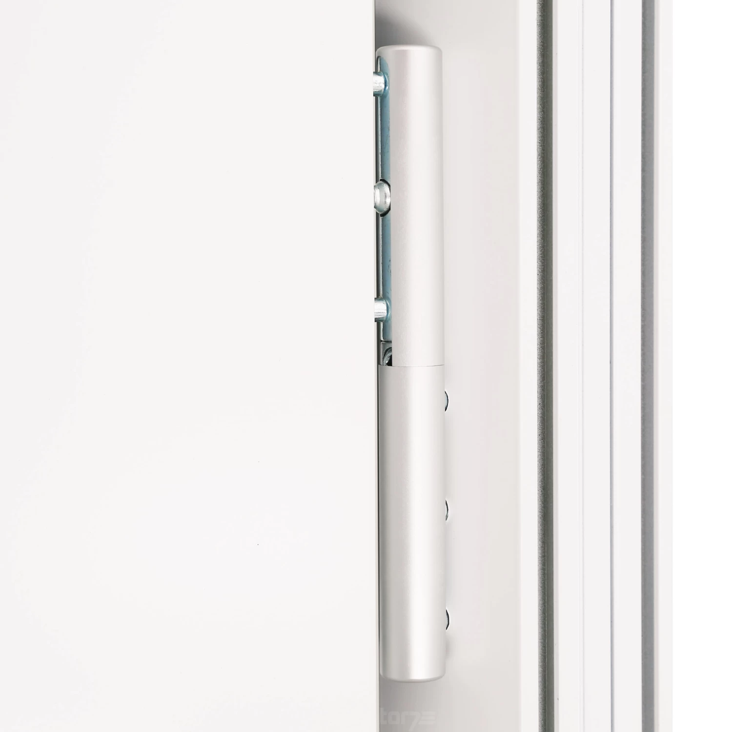 Die zweiteiligen, dreidimensional verstellbaren, stiftgesicherten Rollenbänder sorgen für ein leichtes Öffnen und Schließen der Haustür und optimale Einstellmöglichkeiten. Abdeckkappen in Edelstahl-Optik sorgen für eine gelungene Innenansicht.