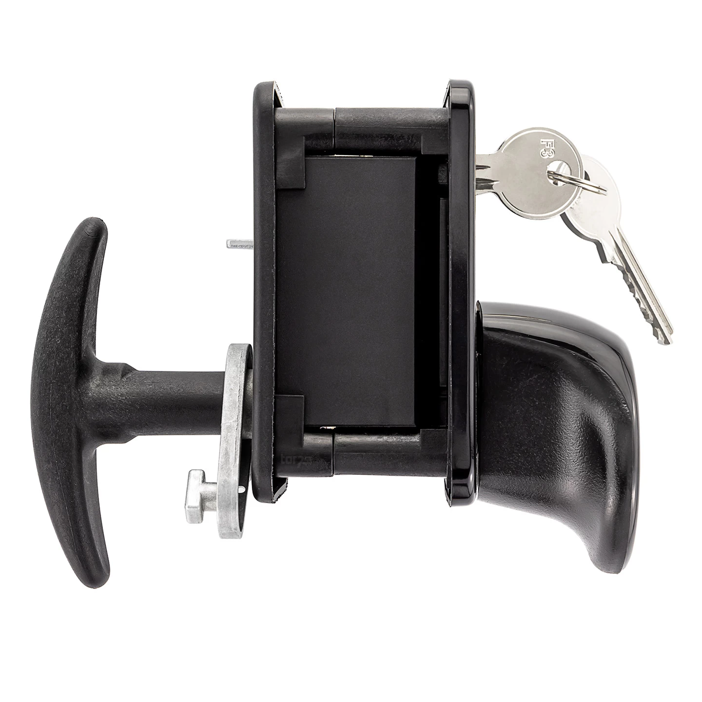 Die Torgriffgarnitur mit Schloss eignet sich für die Sektionaltore der Typen Hörmann LTE 40, EPU 40 und LPU 40. Die Griffe lassen sich angenehm leichtgängig handhaben und verursachen keine schmerzhaften Abdrücke in der Handinnenfläche. Die Verriegelung sichert das Tor dabei seitlich, am an der Zarge befestigten Verschlussbolzen, zuverlässig ab. Für handbetätigte Sektionaltore, die von außen und innen bedient werden, ist dieses Set die richtige Wahl und sorgt für die notwendige Sicherheit bei Einbruchsversuchen.