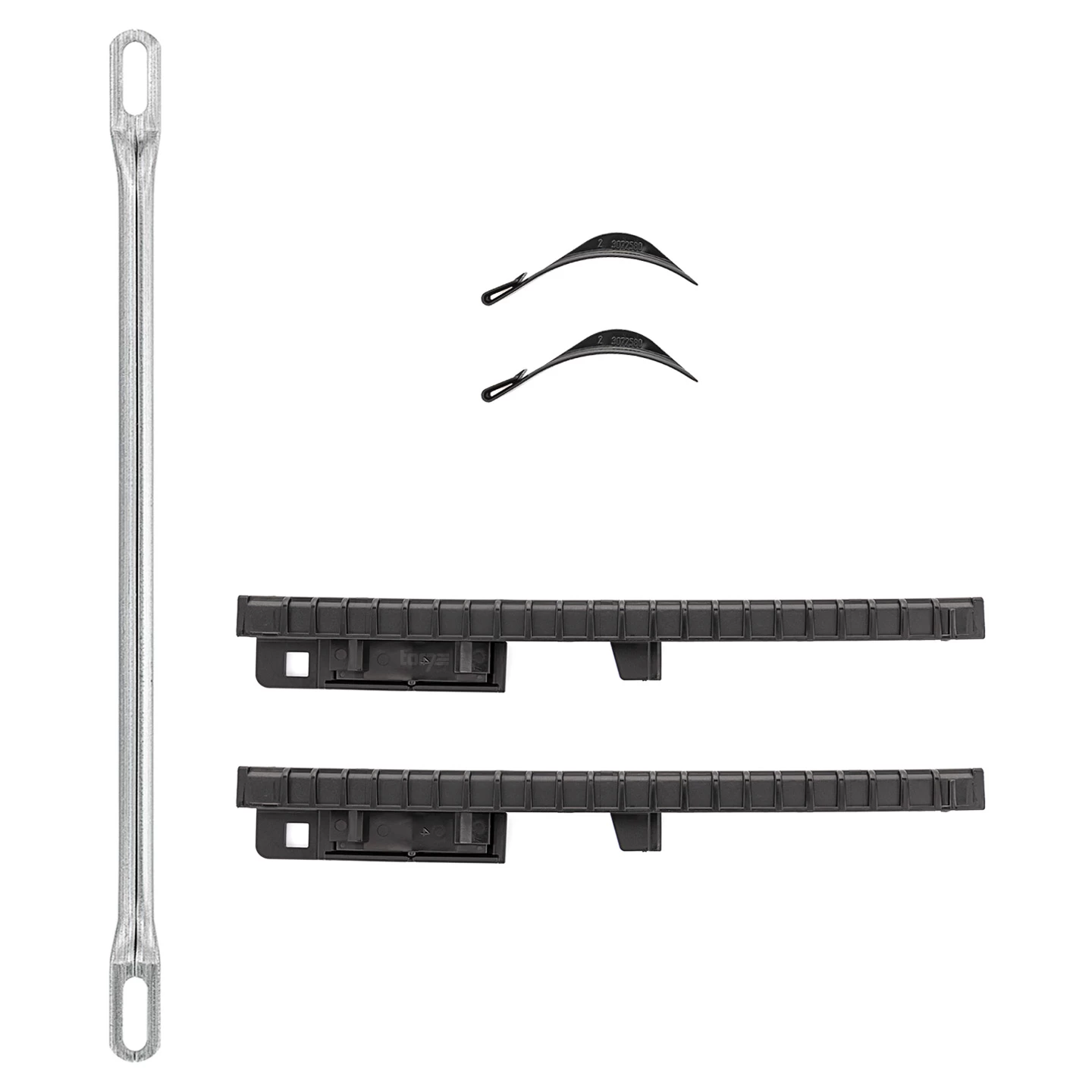 HINWEIS: Die Garnitur lässt sich auch nachträglich einfach montieren. Eine entsprechende Schablone für den bauseitigen Schlossausbruch liegt bei. Hörmann Sektionaltore der Ausführung EPU 40 mit 42/20 mm Lamelle müssen im Bereich der Verriegelung unterfüttert werden. Nutzen Sie hierfür das Hörmann Set: Unterfütterungen Rollenhalter-Verriegelung, Aufbaurahmen.