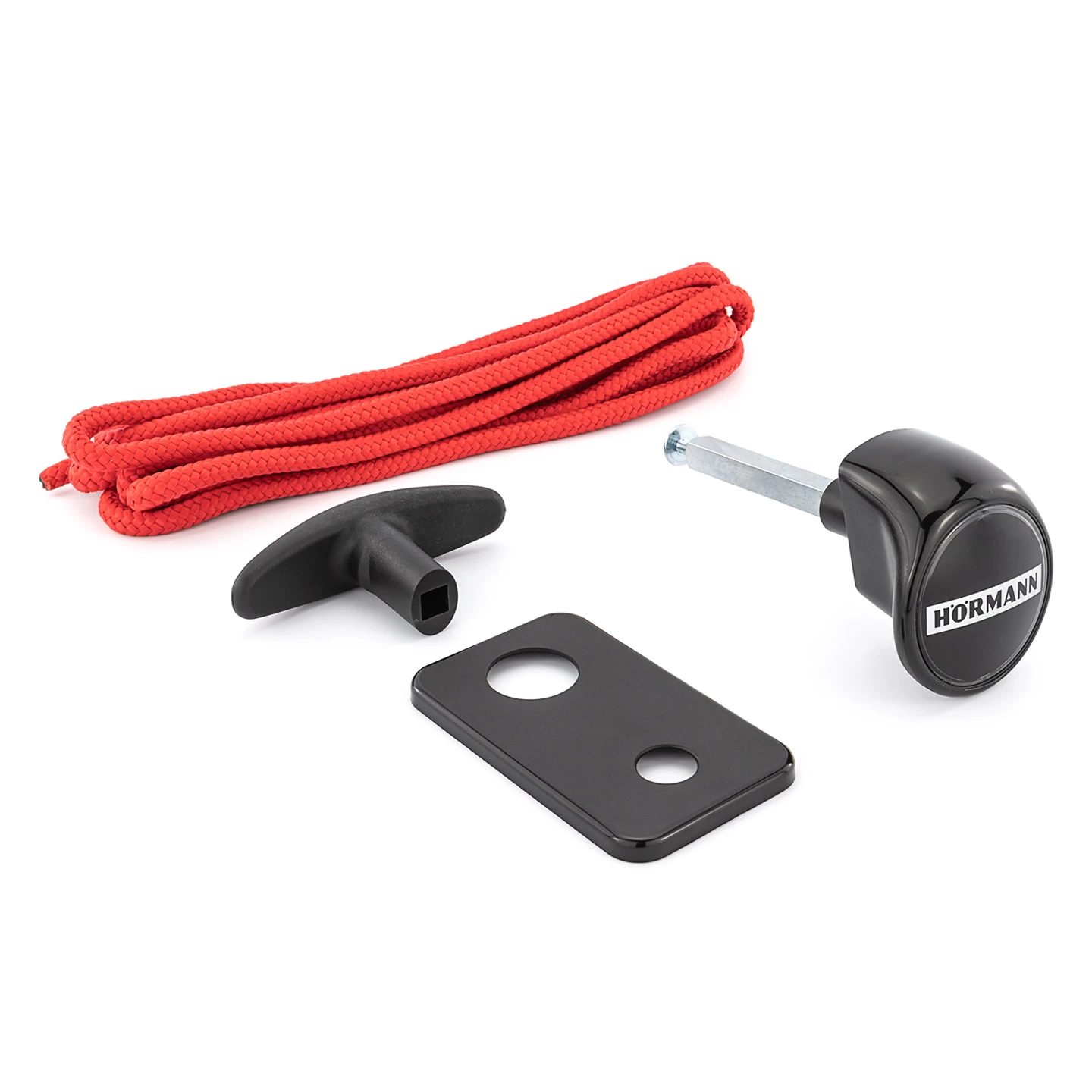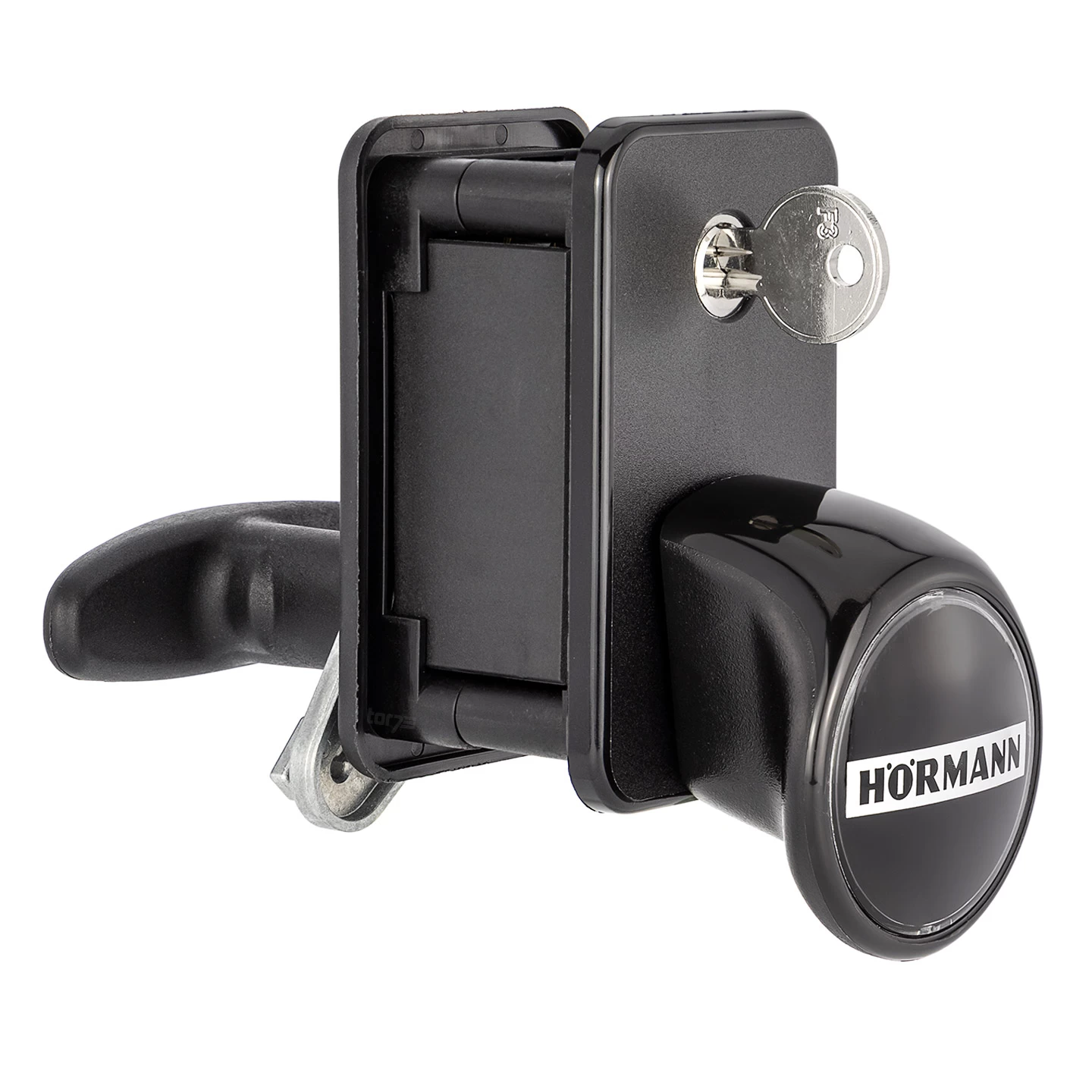 Die Verwendung erstklassigen Materials sowie die solide Verarbeitung setzen mit diesem Produkt den von Hörmann gewohnten Qualitätsstandard fort. Hörmann Sektionaltore und Hörmann Torgriffgarnituren sind produktionstechnisch ideal aufeinander abgestimmt. In der optischen Gestaltung fügt sich die aus neutralem schwarzem Kunststoff gefertigte Torgriffgarnitur mit ihrem Innenleben aus Metall harmonisch in das Design von praktisch allen Sektionaltoren ein.