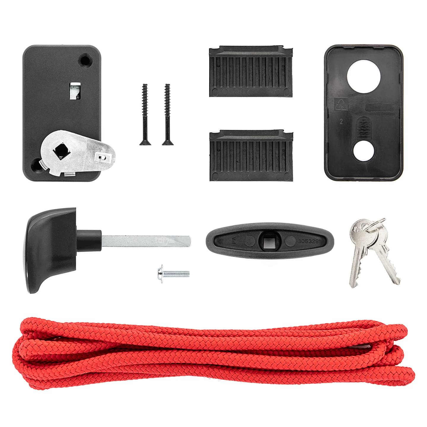Sektionaltore für Garagen laufen zum Öffnen und Schließen nicht immer über einen automatischen Torantrieb. Um sie per Hand bedienen zu können, sind Torgriff und Schloss erforderlich. Mit dieser Torgriffgarnitur mit der alten Artikelnummer 3060828 für Garagen-Sektionaltore des renommierten Herstellers Hörmann erhalten Sie gleich zwei Vorteile: Das manuelle Öffnen und Schließen sind optimal zu handhaben. Außerdem bietet das Set mit Schloss beruhigende Sicherheit – bei dem Inhalt in einer Garage schließlich ein grundlegendes Bedürfnis.