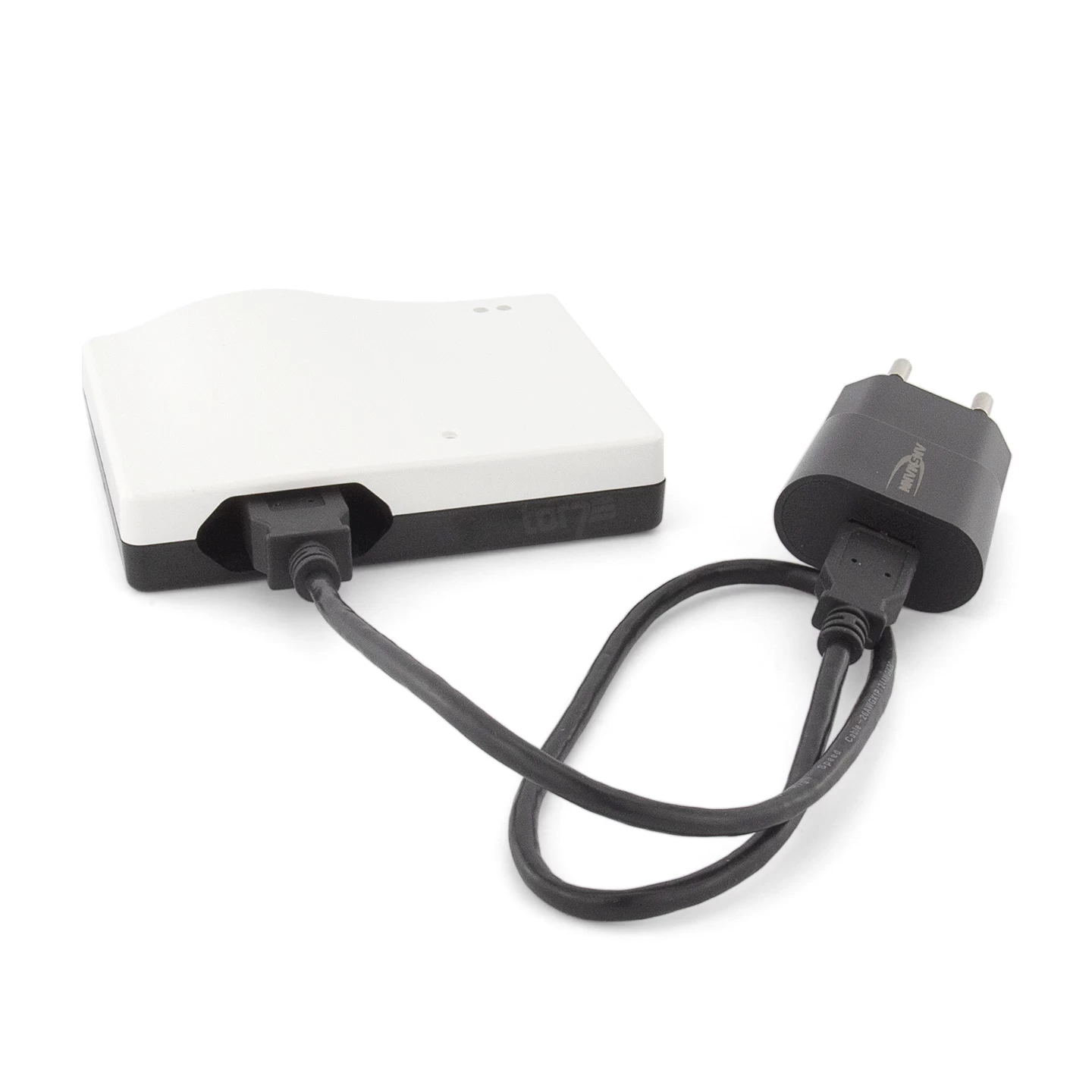 Die Smarthome-Zentrale besteht aus einer Platine, die innerhalb eines formschönen Kunststoffgehäuses untergebracht ist. Hinzu kommen ein USB-Anschluss sowie eines in eine Steckdose einsteckbares Steckernetzteil. Weiterhin ist sowohl ein WLAN- als auch ein SOMloq2 Funkmodul eingebaut. Dank dieser Funktechnik kann das SOMMER SOMweb sowohl mit Ihrem Smartphone als auch mit dem Torantrieb kommunizieren. Es agiert damit als eine Schnittstelle zwischen beiden Geräten, die so eine Bedienung per Handy ermöglicht.