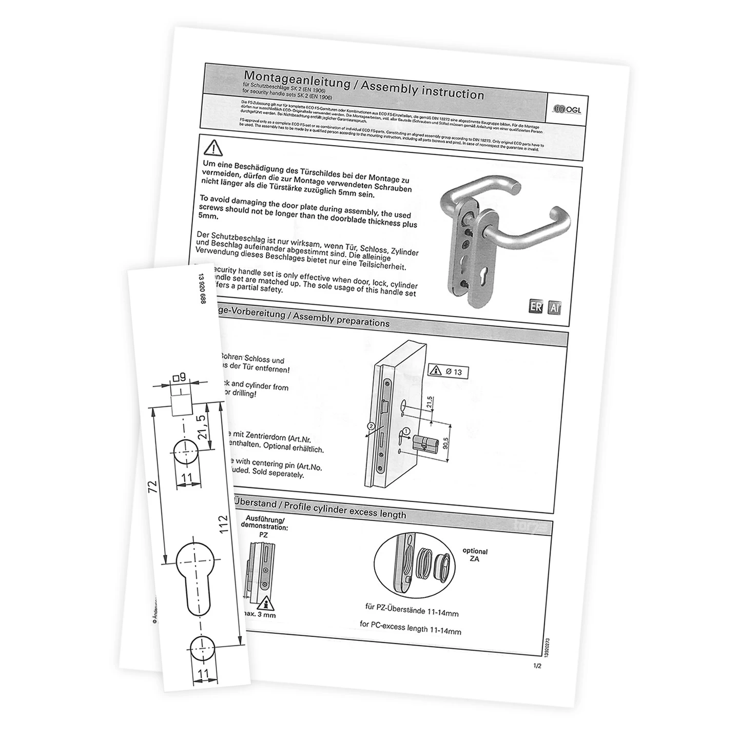 - NICHT geeignet für Sicherheitstüren der Widerstandsklasse RC3 und RC4